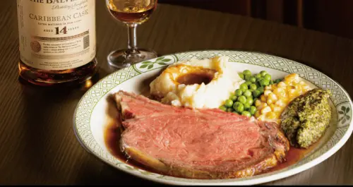 誰說牛排只能配紅酒!勞瑞斯牛肋排餐廳「百富威士忌牛排餐」饕客必點,「威士忌嫩雞清湯、威士忌法式可麗餅」微醺滋味很愛。