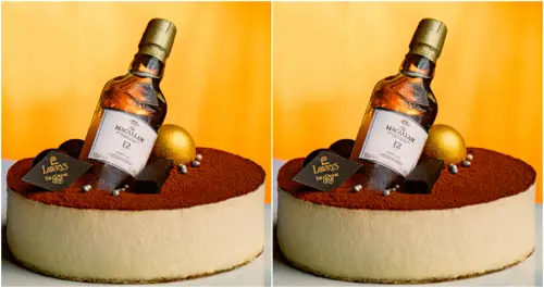 父親節微醺蛋糕推薦!勞瑞斯牛肋排餐廳「麥卡倫威士忌提拉米蘇」威士忌罐直接插上,再送500元優惠券。