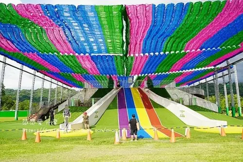 免門票超大親子公園【南投名間親子生態園區】彩虹溜滑梯|大草皮|天空步道|還有遮陽 親子休閒娛樂的好地方