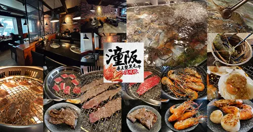 【台中燒烤】潼阪帝王蟹黑毛牛頂級燒烤,低調帶著工業風的用餐環境,A5和牛海鮮饗宴海陸通吃,最有樂趣的還是活跳跳泰國蝦可以現夾、現烤、現吃!很新鮮。台中燒肉吃到飽
