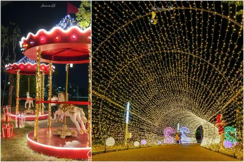 【台中西屯|景點】2021年中央公園聖誕裝置。紅色夢幻旋轉木馬,搭配黃色燈海隧道,美拍一波