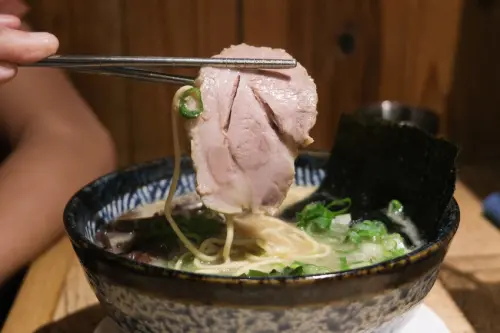 大口吃肉超爽快!!超厚叉燒的豚骨拉麵。旭一拉麵