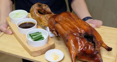 桃園烤鴨控衝台茂!全新片皮烤鴨專賣店「上菜」一號店插旗桃園台茂,31天不限量送超涮嘴「麻辣鴨翅」、「片鴨套餐9折優惠券」。