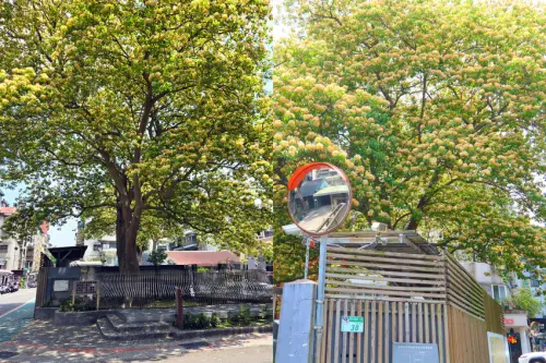 台電大樓站樹高四層樓!四月盛開台電加羅林魚木,超樹蔭光影形成美麗的街景