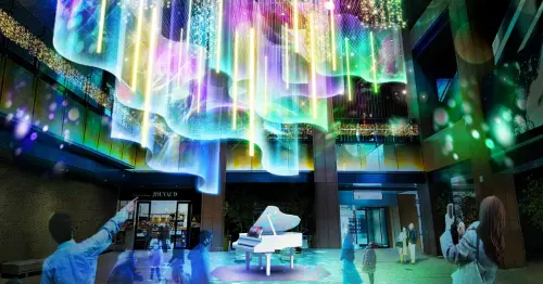 KITTE名古屋2025聖誕燈光秀,手搖鈴變換極光色彩,互動式夢幻點燈震撼登場。