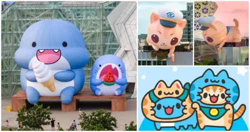 巨大萌高雄打卡點!15米高「胖鯊魚、蜜柑站長、咖波」攻佔高雄流行音樂中心,LINE貼圖「海洋派對 高雄聯萌」連續67天裝可愛。