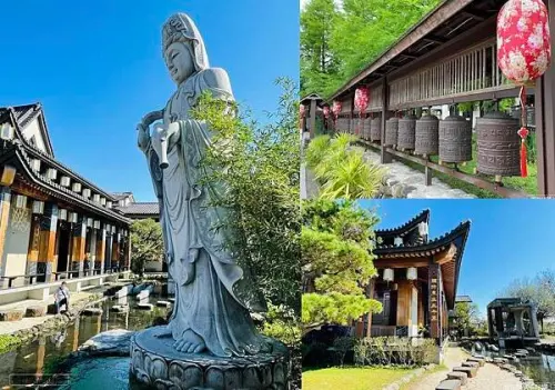 宜蘭員山》靜謐莊嚴唯美的東方禪風建築【北后寺】參拜5尺泥塑大佛,轉經輪點燈祈福,在心願亭掛上祈福卡|宜蘭新景點