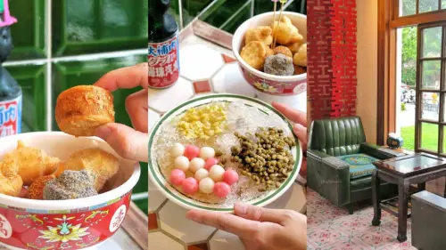 囍室-人氣傳統美食綠豆蒜剉冰.地瓜球.白糖粿在這裡~屏東勝利星村美食超復古的內用環境值得你來拍照打卡~屏東銅板美食推薦有冷氣開放的囍室綠豆蒜