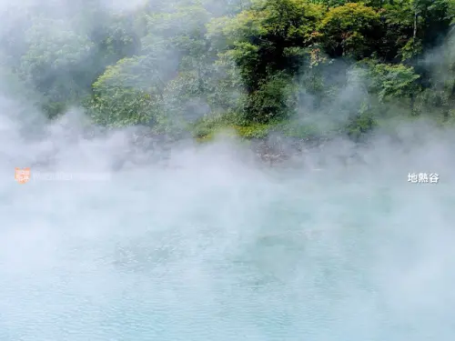 地熱谷公園(免門票)全世界唯二青磺泉,淨手礦泉湯、女巫石瀑,環湖步道漫步欣賞夢幻藍湖水及白煙裊裊仙氣,