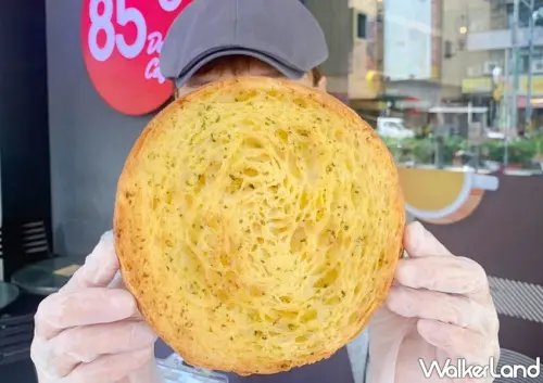 約85〫C買麵包!挑戰比臉大「唱片麵包」,85〫C推出直徑長18公分「大蒜唱片、切達唱片」,活動期間加購價35元開吃。