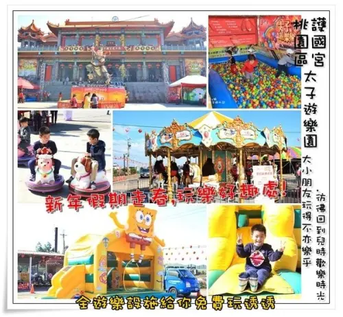 護國宮太子廟(太子遊樂園)|桃園市/桃園區(北台灣最大太子廟/旋轉木馬/咖啡杯/海盜船/大型充氣氣墊設備/投籃機,乎哩玩免費。)