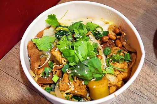 中壢蔬食輕食香知有素餐廳,中原大學好吃超值素食拉麵免費加湯加麵附飲料,出示學生證一張折10元