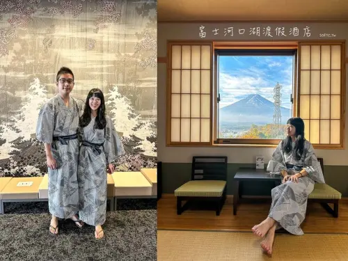 日本河口湖住宿首推!富之湖酒店一泊二食超划算,躺在床上就能看見富士山。