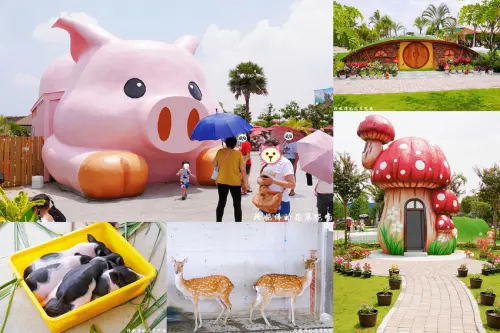 親子遊多元農場,看小動物、小火車、沙坑、鞦韆幸福玩不完!親子友善餐廳~花開了休閒農場