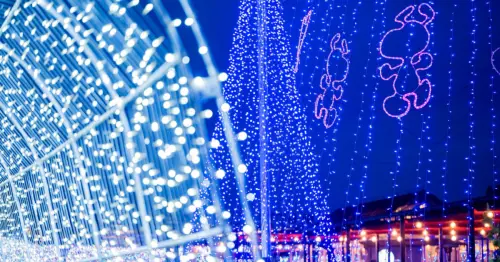 愛媛毛巾美術館4.5萬顆燈飾閃耀,史努比幸福聖誕晚餐開放預約,史努比陪你度過夢幻夜晚。
