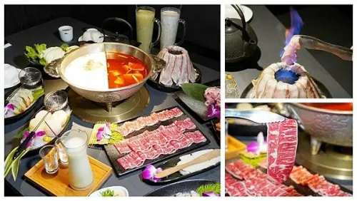 岩漿火鍋|超霸氣大份量梅花豬盤,火焰炙燒視覺饗宴,營業至凌晨3點宵夜場!