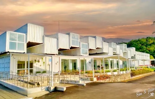 宜蘭縣礁溪鄉宜蘭台塑觀光工廠Herbelle》龍潭湖畔悠活園區,純白貨櫃景觀咖啡,順遊龍潭湖大溜滑梯、吃臭豆腐~玩
