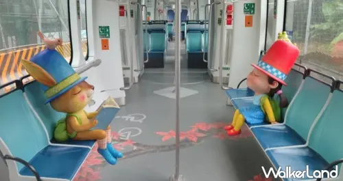 幾米主題列車來了!淡海輕軌推出3款幾米主題列車,「閉上眼睛一下下」繪本娃娃驚喜現身車廂,超萌模樣讓人捨不得下車。