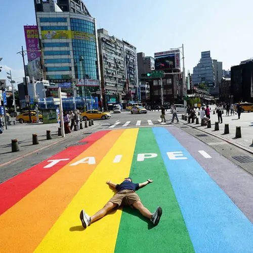搶拍絕對,西門町竟出現13公尺長的彩虹地景!就在西門站六號出口,連躺著拍都超好看,快衝。