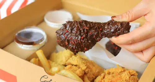 巧克力加炸雞!肯德基新品「愛情醬淋 可可脆雞餐」情人節限定開吃,買可可炸雞送「LOVE氣球、小燈串」打造最浪漫情人節套餐。