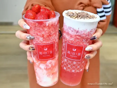 渴以茶|絕美草莓季登場啦!整顆新鮮草莓入料超浮誇,還有三種料讓你免費加~