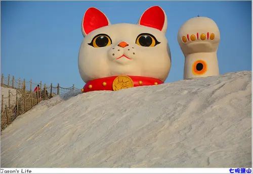 【台南│景點】巨大招財貓進駐鹽山,融為一體太卡哇依啦。七股鹽山(即日起~3/15)
