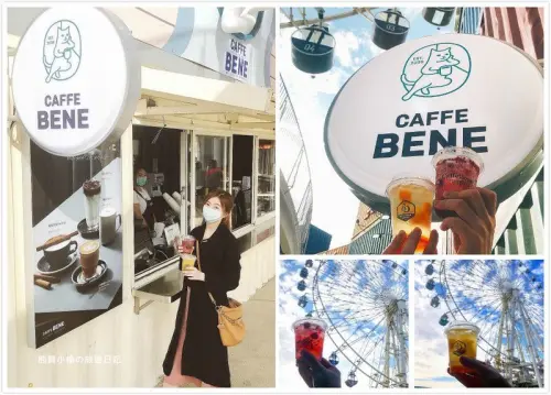 【台中梧棲美食】台中港三井outlet 的咖啡店,來自韓國的咖啡伴Caffe Bene連鎖咖啡,看摩天輪海景最棒的飲品!除了咖啡還有水果口味氣泡飲。