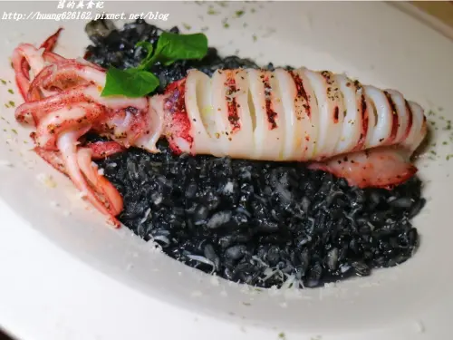 【台北大同區】京站百貨超人氣磚窯披薩『Alleycats 手工窯烤披薩-京站店』三人經典套餐吃超飽/香蘋堅果沙拉/小章魚莎莎/小章魚莎莎/海鮮披薩/墨魚花枝燉飯/香蕉巧克力披薩/愛評體驗團/捷運台北車