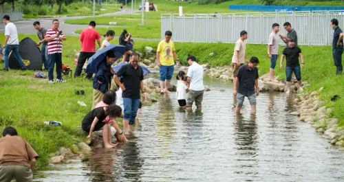 新店人遛小孩玩水去!新店新景點「親情人工溪流」免費開放,捷運出站步行就到「親子安全戲水區」必收。