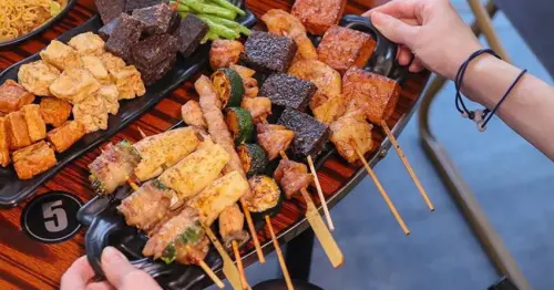 新竹城隍廟旁新竹宵夜推薦!車庫鹽酥雞西門店升級,香辣烤魚吹冷氣爽吃。