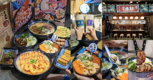 東門市場浮誇系麵線「享來點」打破新竹CP值,超浮誇18隻免剝殼懶人蝦火焰蝦麵線 滿滿海味的豪華蒜蝦鮭魚卵蚵仔滷肉飯