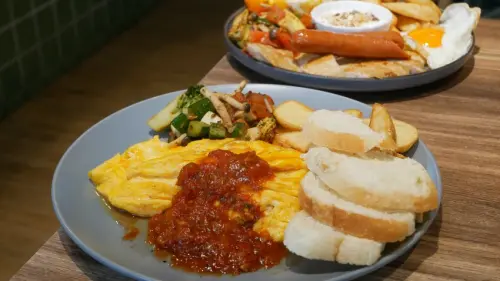 北歐簡約風新莊早午餐店,舒肥雞配炒泡麵,邪惡炸蝦炒麵麵包