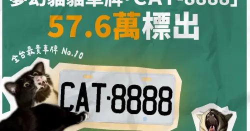 CAT-8888天價57萬決標!「CAT」車牌標售貓奴瘋搶吉祥數字,標售總額破2千萬。