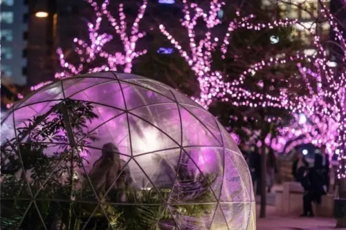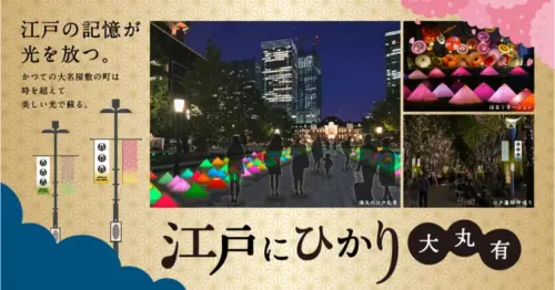 東京丸之內2025冬季燈飾帶你穿越時光,「和風江戶」主題燈海 紙傘打造時尚復古風。