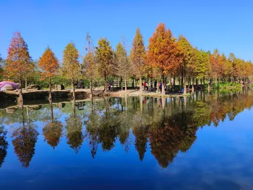 《大溪月眉落羽松秘境》假日趴趴走追逐落羽松的日子/漸層色彩的落羽松在池水中絕美的倒影/優美濕地生態公園綠地『月眉人工濕地生態公園』