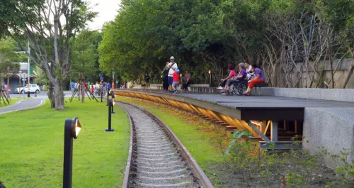 桃園人記憶中的桃林鐵路,在停駛後陸續變身為步道、自行車道、綠帶等休閒場域,近期開放的「蓄光石星光步道」,入夜後散發出點點綠光,場景夢幻迷人。