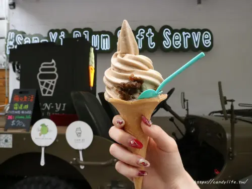 台中美食│梅の生活〃熱熱天氣來支清爽梅子霜淇淋,現場還有威力吉普車可以打卡拍照喔~