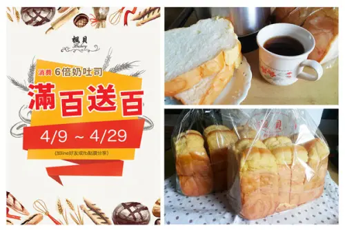 *桃園楓貝麵包坊*優惠大折扣~買百送百~六倍奶吐司配咖啡真絕配!