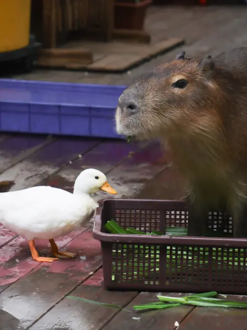 新北土城就能看到可愛水豚君跟柯爾鴨!還有各種餐點及水豚燒