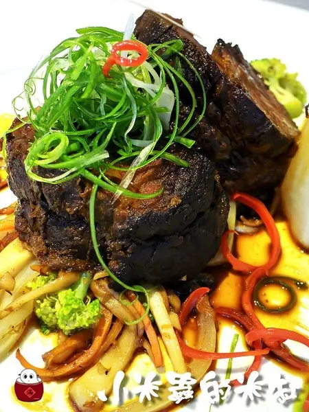 |馬旦馬須法國館|- 賦予牛小排新搭配的全新口感,前菜兼顧味覺與視覺享受,白桃泥佐香草冰淇淋少女心大噴發