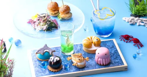 京都凱悅與水族館夢幻聯名,海洋生物造型下午茶太可愛,甜點鹹食都有驚喜。
