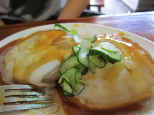 肉圓加美乃滋醬是什麼味道呢!竹下正老牌涼麵涼肉圓