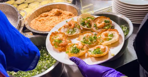 頭頓煎蝦餅必吃!越南炸蝦餅配生菜超涮嘴。