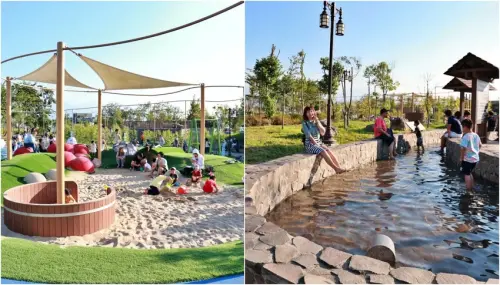 南投埔里首座溫泉主題親子共融公園|埔里景點親子遊戲區、溫泉泡腳池也太棒了!