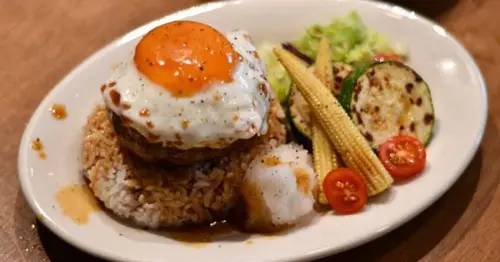 台南日式喫茶店推薦!燭日必吃漢堡排飯份量超乎想像,半熟蛋黃岩漿絕配。