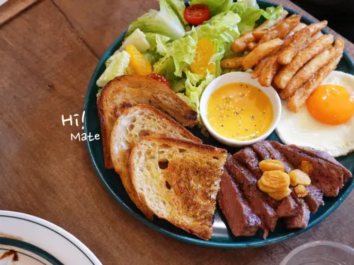 劍潭不限時早午餐推薦,HI MATE澳式早餐盤與酥香酸種麵包