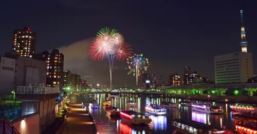 日本東京隅田川花火大會7月26日盛大回歸,2萬發煙花照亮東京夜空。