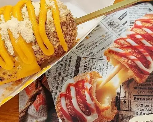 【韓國大邱美食】明朗時代米熱狗(명랑시대쌀핫도그),牽絲牽到天邊兒去狂妄的米熱狗HOT DOG!