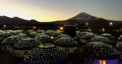 富士山下550萬夜燈齊綻,0.3公里夢幻光之隧道和雷射噴泉秀就在御殿場高原時之栖飯店。