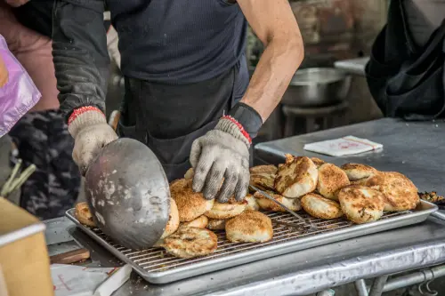 晚到就買不到的三角餅!基隆車站銅板美食在這,從攤販到開店面的「阿國碳烤燒餅店」炭烤滋味超過癮。